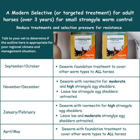 Spring | Target strongyles and bots | Use ivermectin or moxidectin |